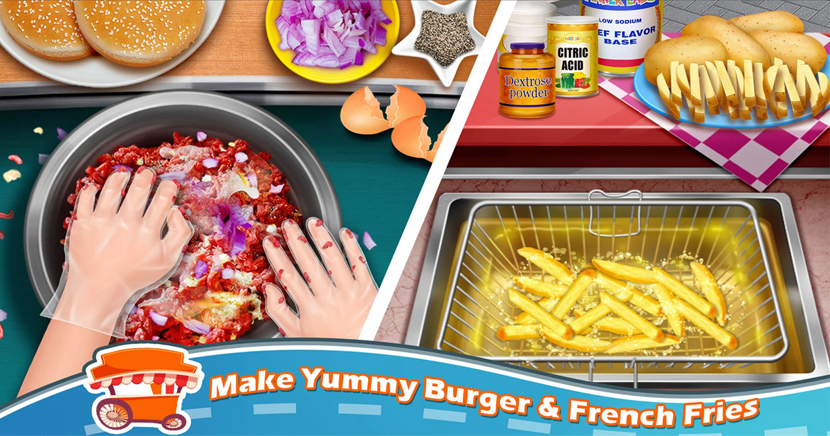 A street fair is a perfect place to experience street food. Think you have what it takes to get customer’s mouths happy with your cooking in Street Food!Start cooking your own yummy snacks in this amazing virtual kitchen. Fry up some hot dogs and decorate them with ketchup and mustard, create hamburgers, french fries, nachos, pizza, then add some amazing toppings so they look as good as the taste. You will love playing chef games as they make their favorite foods, and you'll love that cooking up a chef quality snack doesn't mess up your whole kitchen!